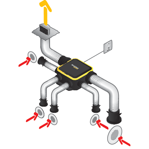 - exhaust airflow automatically controlled at each connection via the kitchen auto amplifier and bathroom/WC controllers,