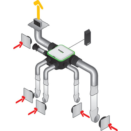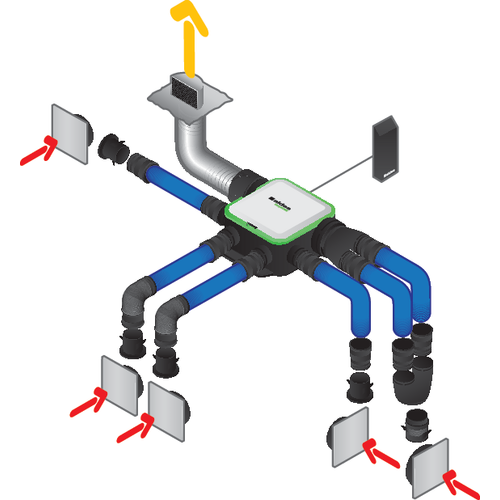 - 4 x Ø 80 mm connections for bathroom/WC,
