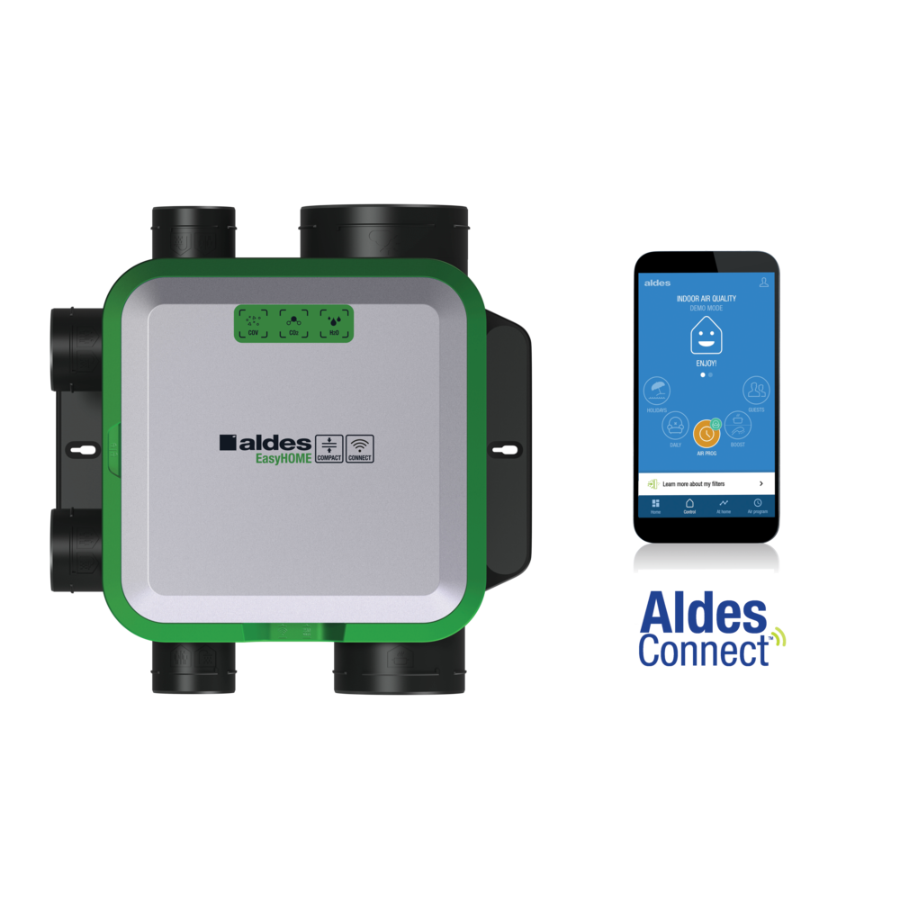 - EasyHOME PureAIR Premium can be connected later with the purchase of an AldesConnect® Box modem,