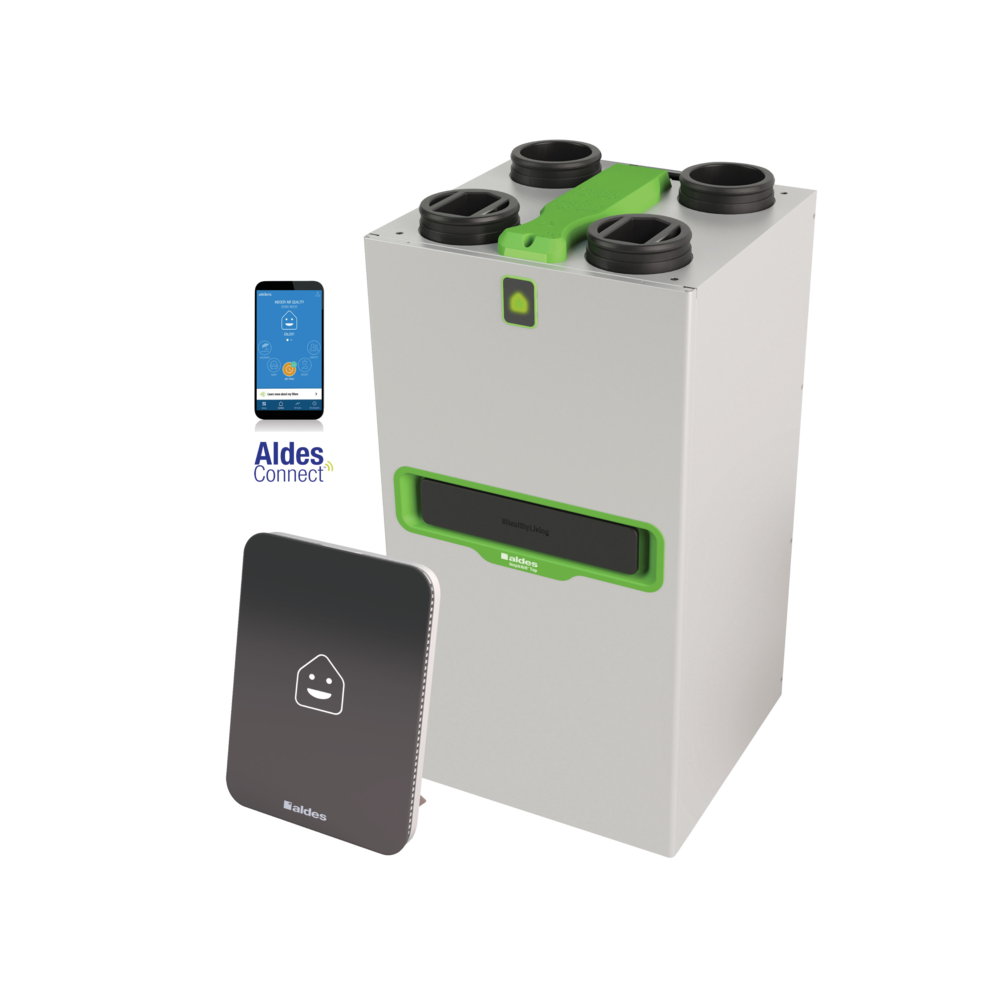 Connected heat recovery ventilation solution for efficient elimination of the smallest pollutants, adapts to user requirements.