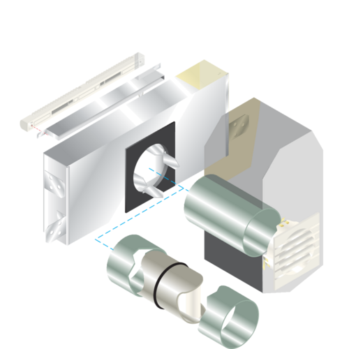 MTC est un manchon placé dans l'isolant du mur et qui permet le montage d'une grille côté extérieur et, via le MEA ou TM, d'une entrée d'air autoréglable ou hygroréglable côté intérieur. La réservation circulaire dans le mur peut être en PVC diamètre externe 125mm.