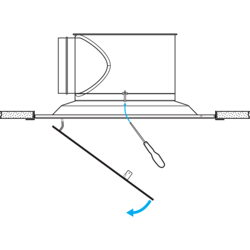 Le diffuseur TWISTED® 850 s'installe au plafond. Il se fixe à la dalle béton à l'aide de pattes situées sur le plénum.