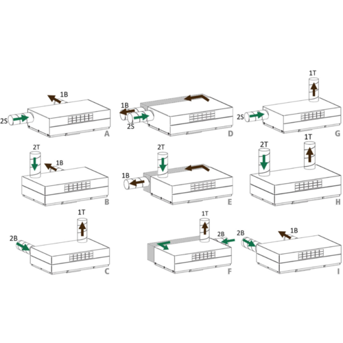 - filtre ePM10 60% (M5) pour l’air extrait et ePM1 55% (F7) pour l’air neuf (en option : F9, F7, M5, préfiltre ISO Grossier 85% (G4)),