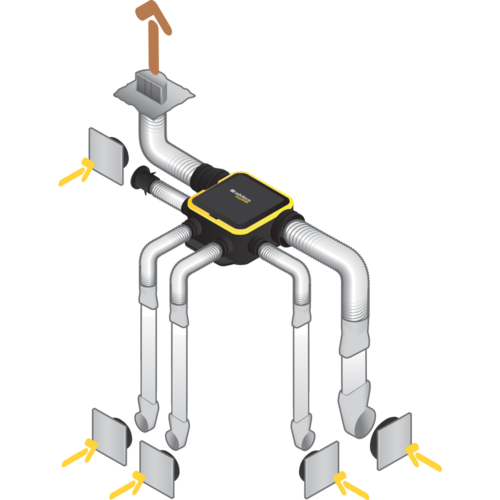 - renouvellement de l'air maîtrisé et adapté à chaque pièce ventilée grâce aux régulateurs de débit dans les piquages,