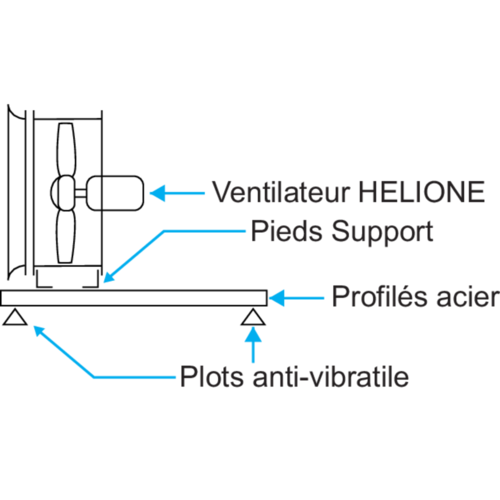 - plaque carrée et pieds et plots anti-vibratiles, contre-brides et manchettes souples ou grille si non raccordé.