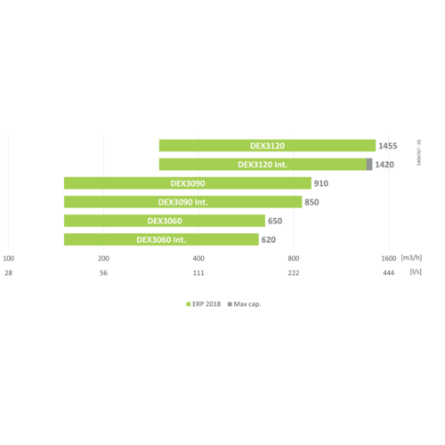 L'unité DEX3000 apporte de l’air neuf et filtré dans le bâtiment et récupère la chaleur de l’air extrait à l’aide de son échangeur de chaleur à haut rendement. L’air entrant peut être chauffé et/ou refroidi avec une gamme complète de batteries.