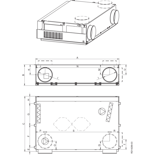 - filtre ePM10 60% (M5) pour l’air extrait et ePM1 55% (F7) pour l’air neuf (en option : F9, F7, M5, préfiltre ISO Grossier 85% (G4)),