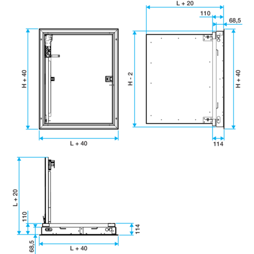 - si contre cadre scellé, ajouter l’épaisseur du scellement à L et H,